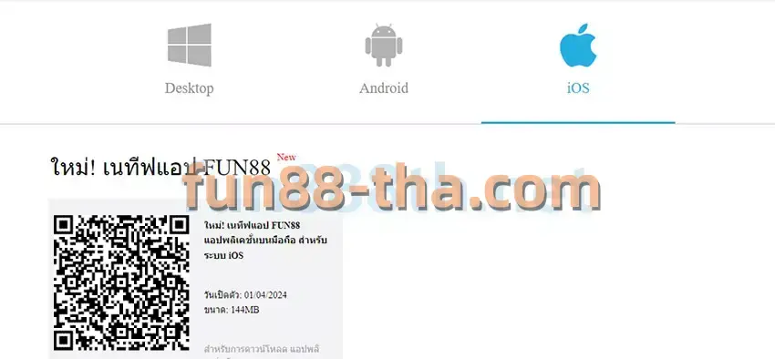 1. เข้าสู่หน้าแอป ฟัน88 และสแกน QR Code สำหรับ iOS