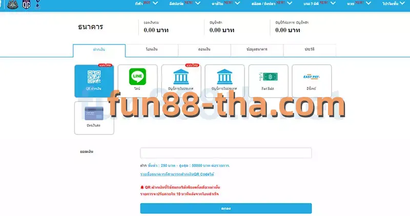 ที่คาสิโนออนไลน์ fun88 เรามีวิธีการถอนเงินสามวิธี ได้แก่ การโอนเงินผ่านธนาคาร เงินบาทด่วน และทรูมันนี่